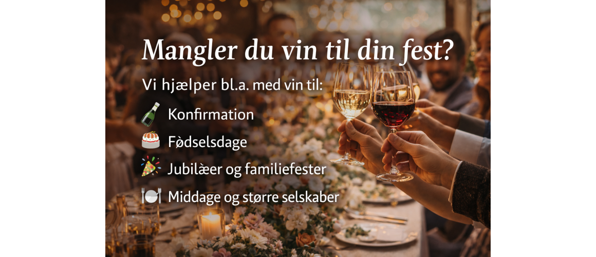 Skal du holde konfirmation, fødselsdag, jubilæum eller en anden særlig begivenhed, og mangler du den rette vin til menuen?